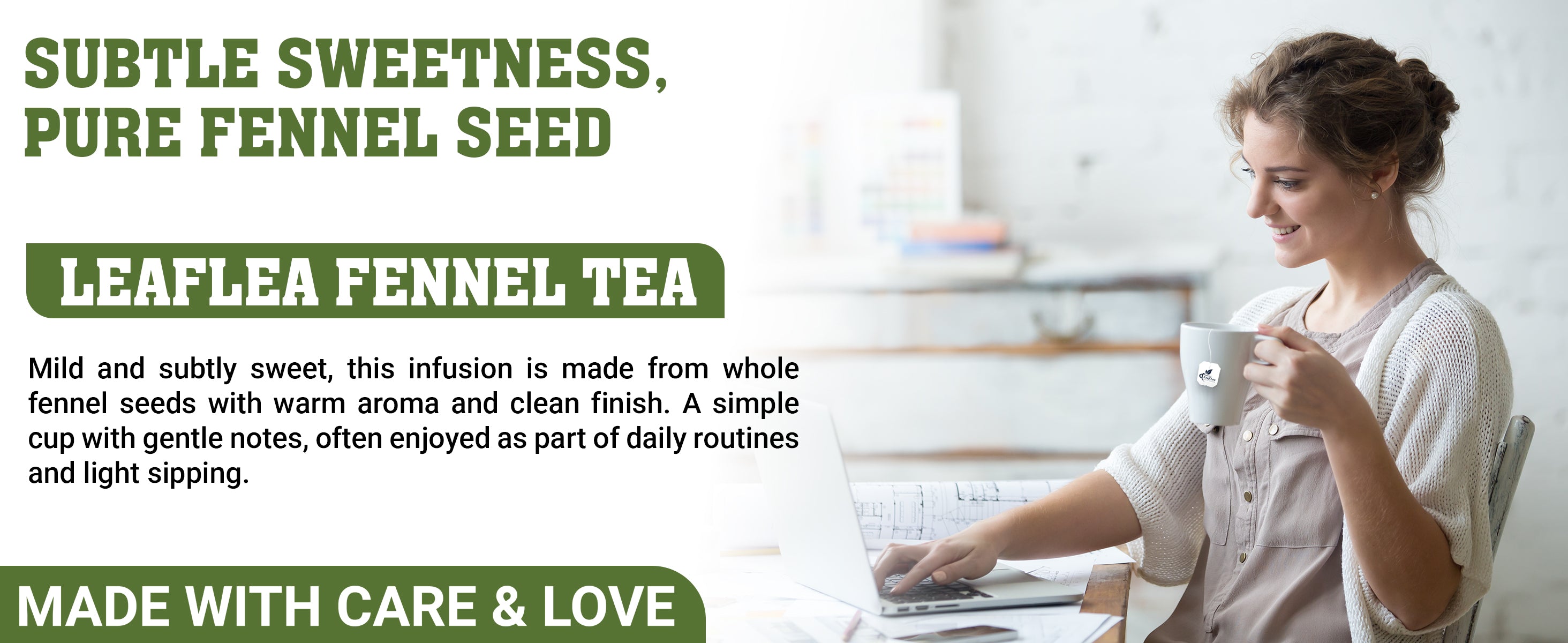 Naturally Sweet Notes: Fennel tea offers a smooth, gently sweet profile with a warm herbal aroma that rises softly as you brew. Each cup brings a mild and balanced experience, ideal for those who enjoy simple, soothing herbal with no added flavorings.