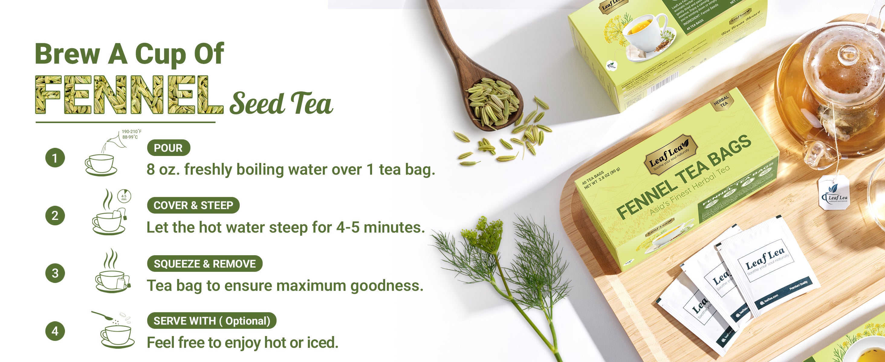 LeafLea Fennel Tea – 100% Pure Fennel Seed Herbal Tea, 40 Bags