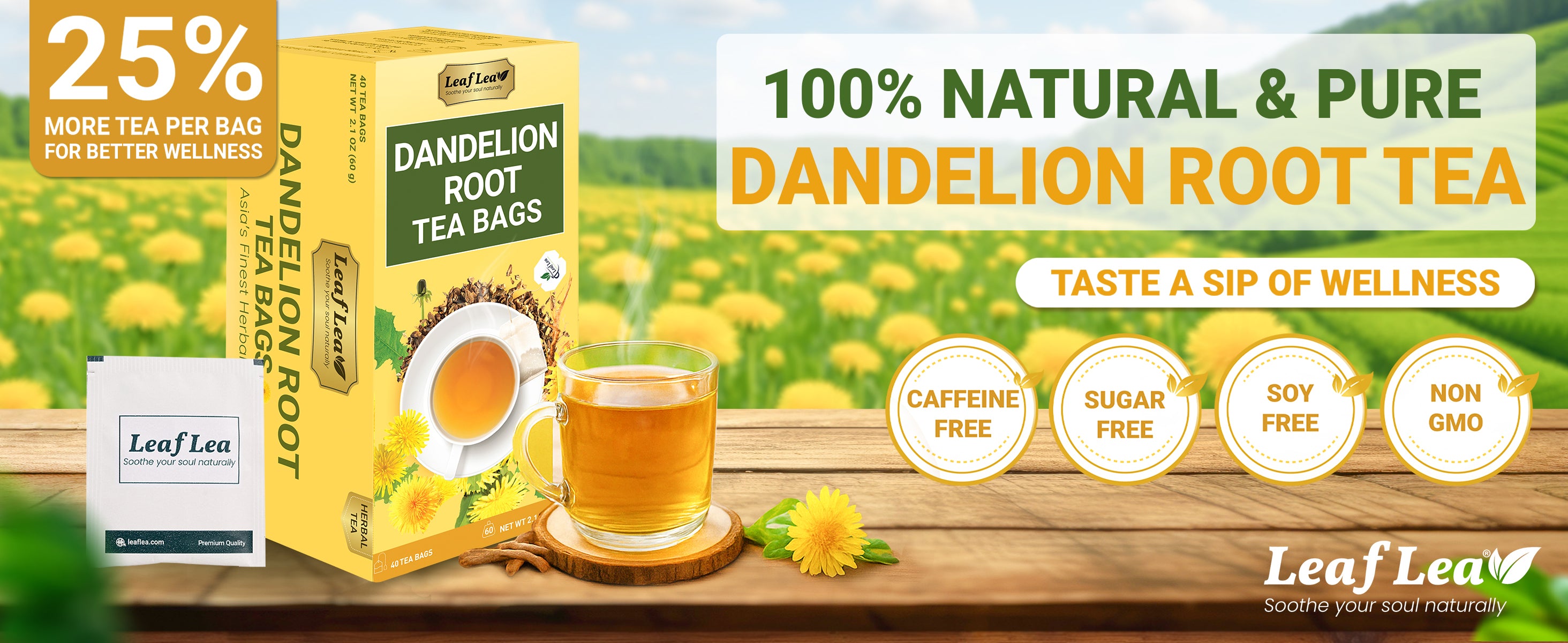 Experience the natural benefits and robust flavor of LeafLea Dandelion Root Tea Bags—a premium tea crafted to support your well-being with every sip.